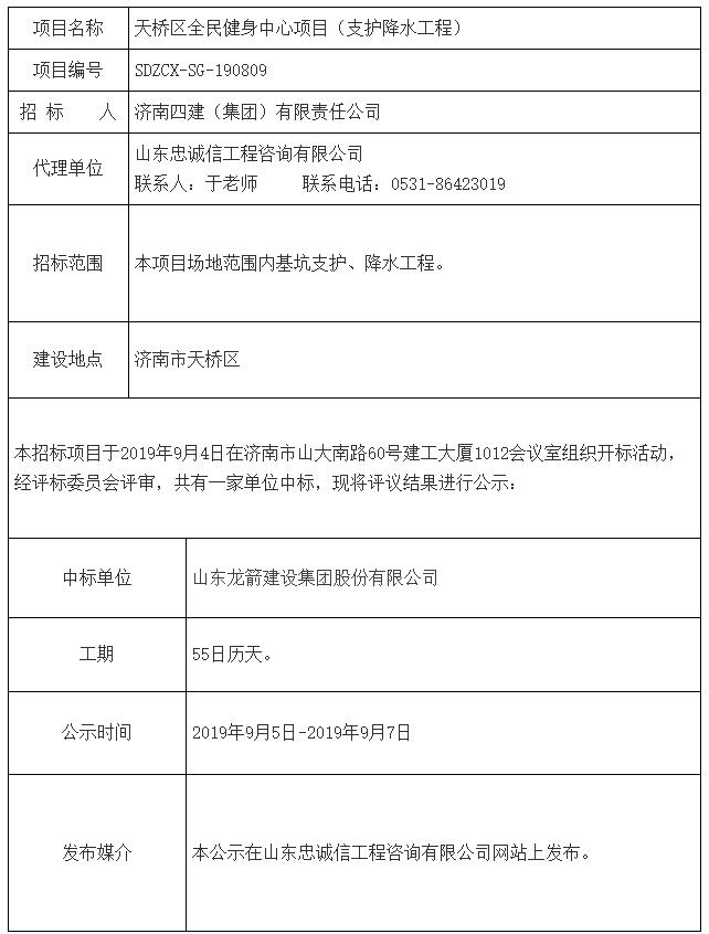 天橋區(qū)全民健身中心項目(支護降水工程)中標公示