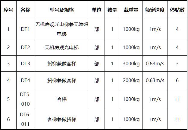 2.1采購需求表:本次電梯設(shè)備采購共6部,內(nèi)容如下: